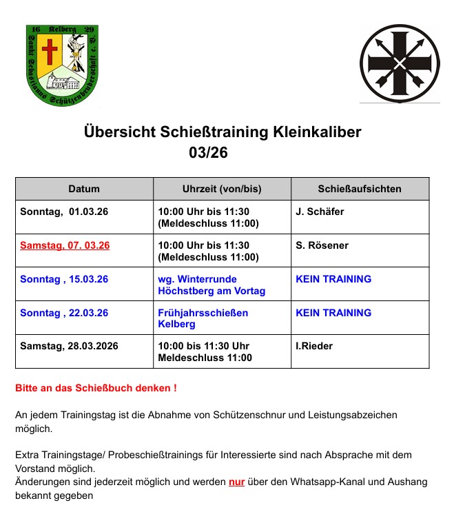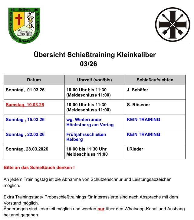 (Anlassbezogen können sich die Trainingszeiten ändern)