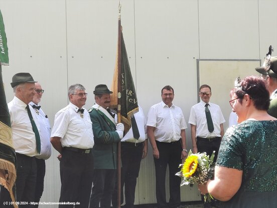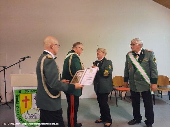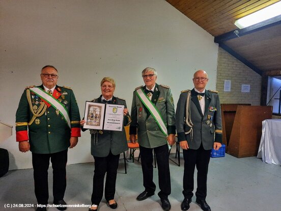 v. li. Diözesanbundesmeister Hubert Mohr, Marga Kinner, Bezirksbundesmeister Norbert Steffens, Brudermeister Jürgen Schäfer