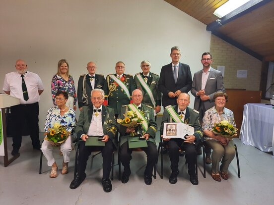 Diese drei Schützenbrüder sind nicht nur die dienstältesten Mitglieder, sondern auch die prägenden „Macher, Akteure“ der Bruderschaft. Alle Drei haben über viele Jahrzehnte Vorstandsämter und verantwortliche Positionen innegehabt und mit Herzblut und Leben ausgefüllt. Es würde Seiten füllen die Tausenden von Stunden aufzuzählen die die Geehrten für die Schützenbruderschaft und die Gemeinschaft aufgebracht haben.