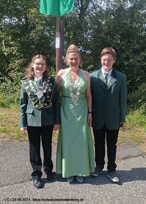 An allen Wettbewerben haben sie teilgenommen, Felix hat am Spendenadler den Schweif abgeschossen. Die Bruderschaft aus Zermüllen hat ebenfalls auf den Adler gesetzt und unserer Jugend die Lose und die Gewinne geschenkt. Daher hat Anna-Lena im Namen der Bruderschaft aus Zermüllen das Zepter und den Apfel abgeschossen.