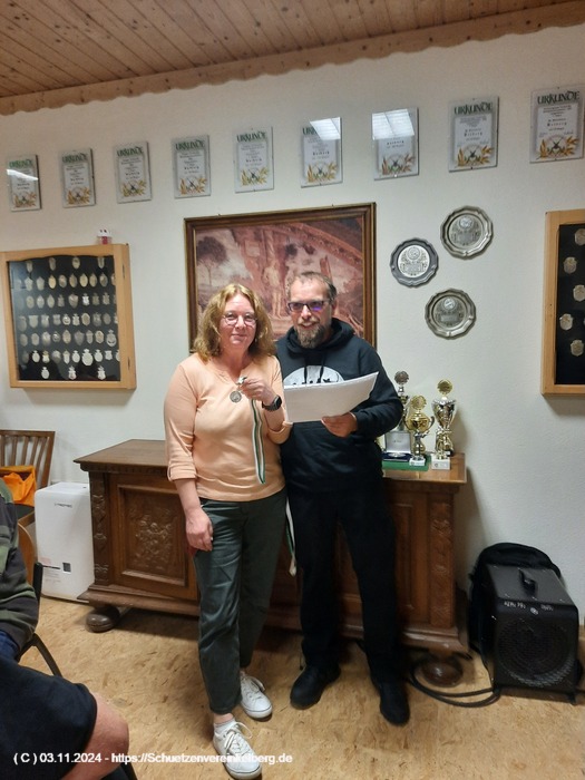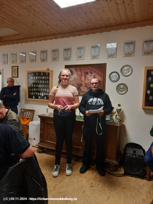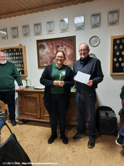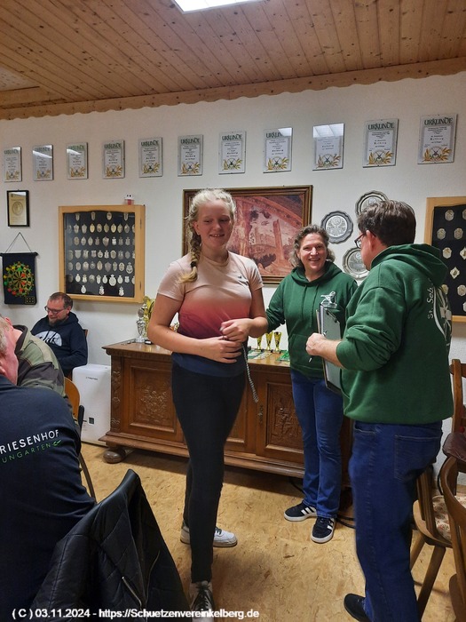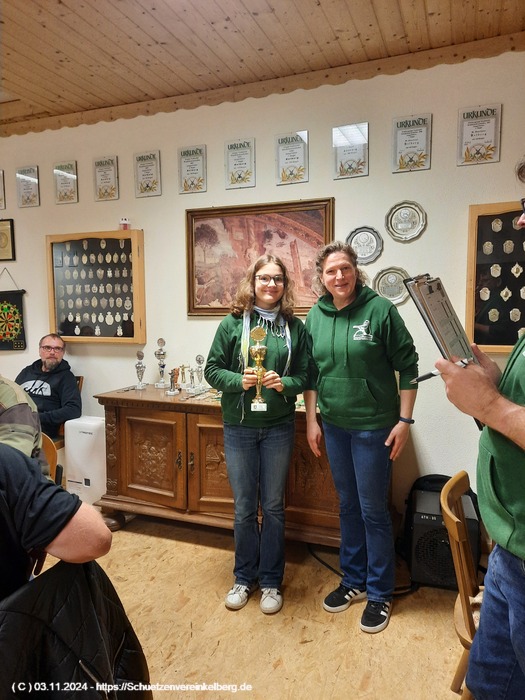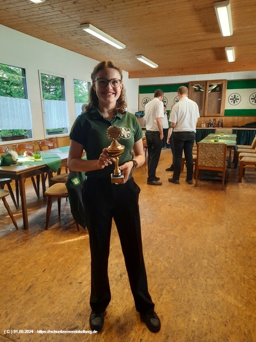 Sie schoss insgesamt vier Adlerteile ab und belegte in der Konkurrenzscheibe den 2. Platz mit 29 Ringen gestochen 30 hinter Paul Wollenweber und vor Johanna Schubach aus Luxem.