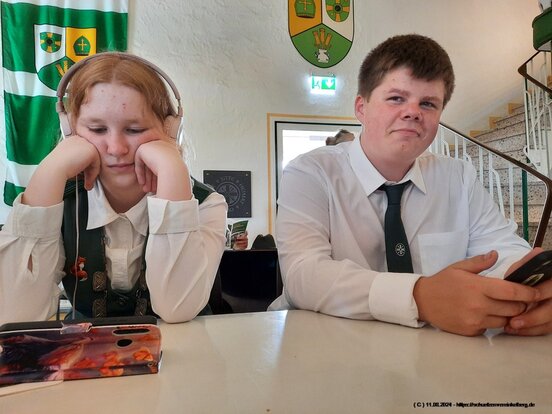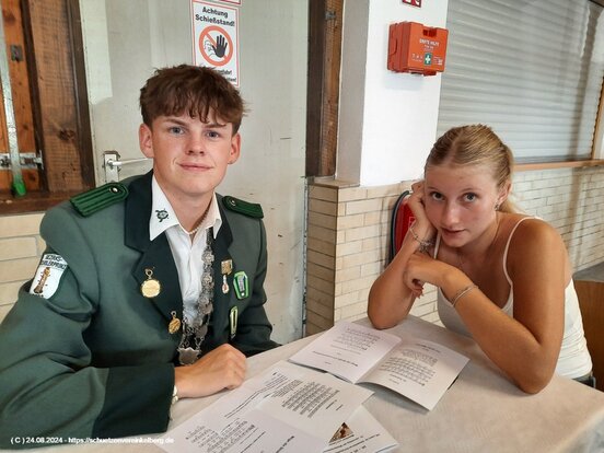 An allen Wettbewerben haben sie teilgenommen, Felix hat am Spendenadler den Schweif abgeschossen. Die Bruderschaft aus Zermüllen hat ebenfalls auf den Adler gesetzt und unserer Jugend die Lose und die Gewinne geschenkt. Daher hat Anna-Lena im Namen der Bruderschaft aus Zermüllen das Zepter und den Apfel abgeschossen.