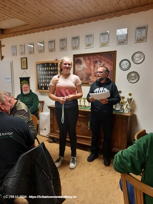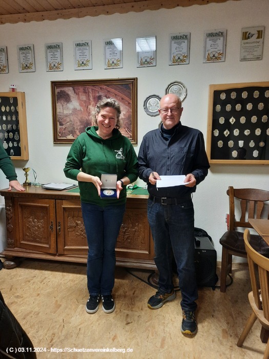 Sie schoss insgesamt vier Adlerteile ab und belegte in der Konkurrenzscheibe den 2. Platz mit 29 Ringen gestochen 30 hinter Paul Wollenweber und vor Johanna Schubach aus Luxem.