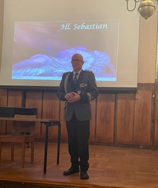 Am ersten Advent, zum Einkehrtag der Schützen des Bezirksverbandes Maria Laach, konnte Jürgen Schäfer in der historischen Aula des Klosters einen Vortrag über den Heiligen Sebastian halten.